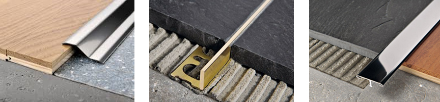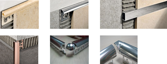 In alluminio anodizzato, acciaio inossidabile, e PVC non deformabile rafforzato non tossico, consentono una rifinitura finale imbattibile, riducendo i costi di smussatura delle ceramiche, ed eliminando il rischio di rottura dei pezzi in futuro. (I nostri profili dispongono di giunture fino a 3 angoli interno ed esterno).